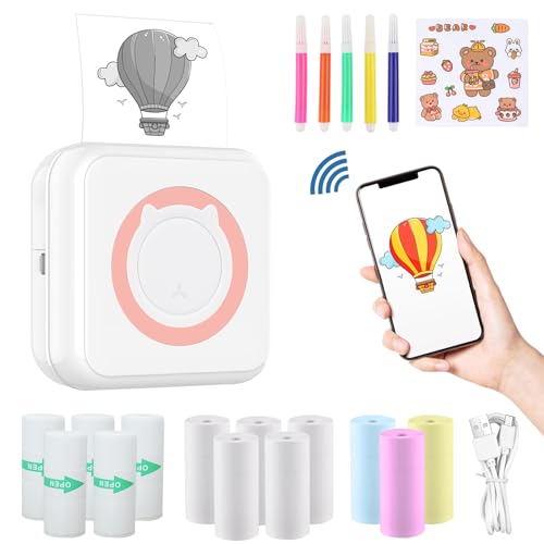 ZAKVOP Mini Imprimante Portable, Mini Imprimante Thermique, imprimante Photo Portable pour Android et iOS, imprimante sans Encre pour Notes, Images, Photos, Journal, DIY - Pink