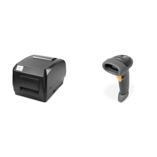 DIGITUS Set: Imprimante d'étiquettes 200 DPI - Imprimante à Transfert Thermique & Thermique directe - USB, RS232, LAN - Slot SD - Noir - avec Lecteur de Codes-Barres 2D