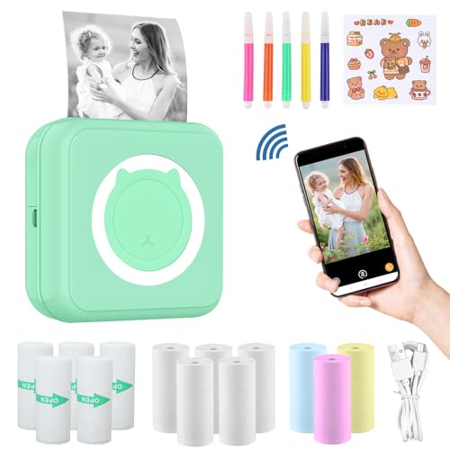 ZAKVOP Mini Imprimante Portable, Mini Imprimante Thermique, imprimante Photo Portable pour Android et iOS, imprimante sans Encre pour Notes, Images, Photos, Journal, DIY - Vert