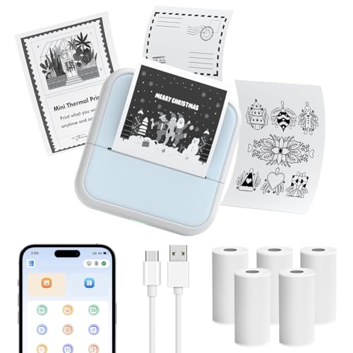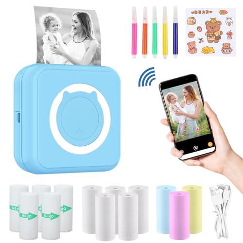 ZAKVOP Mini Imprimante Portable, Mini Imprimante Thermique, imprimante Photo Portable pour Android et iOS, imprimante sans Encre pour Notes, Images, Photos, Journal, DIY - Bleu
