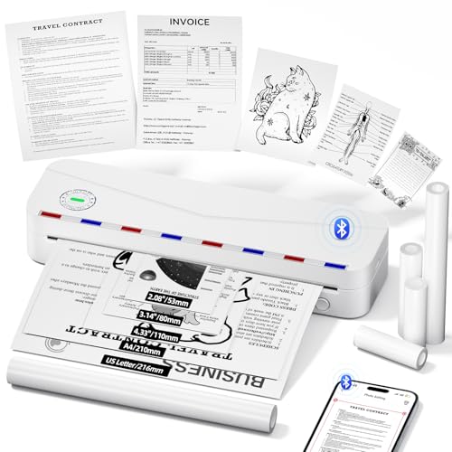 vretti P83 Imprimante Thermique Portable A4, Imprimante Portable sans Encre, Compatible avec iOS et Android Via Bluetooth, avec 1 Rouleaux de A4 Papier Thermique,Voyage, Bureau, École, Maison,Voiture