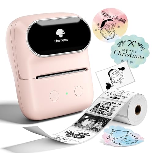 Phomemo Étiqueteuse M108, Étiqueteuse Autocollante contien 1 Rouleau Étiquettes, Imprimante Etiquette Thermique,pour Les Codes-Barres,Vente au détail, Bureau, Compatible avec iOS et Android-Rose