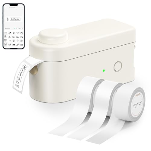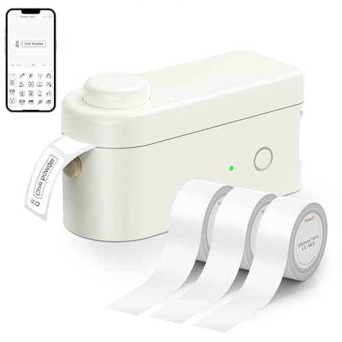 Makeid Etiqueteuse L1-C avec 3 Rouleux d'Étiquettes Blanches, Imprimante Thermique Mini Portable Bluetooth, Compatible avec iOS et Android, Idéale pour la Maison, Le Bureau, la Cuisine