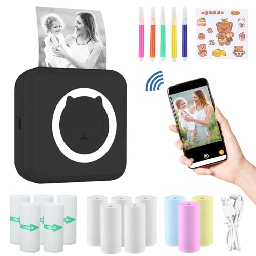 ZAKVOP Mini Imprimante Portable, Mini Imprimante Thermique, imprimante Photo Portable pour Android et iOS, imprimante sans Encre pour Notes, Images, Photos, Journal, DIY - Noir