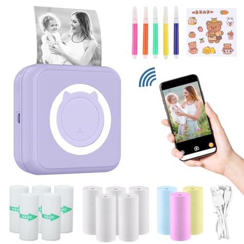 ZAKVOP Mini Imprimante Portable, Mini Imprimante Thermique, 300DPI imprimante Photo Portable pour Android et iOS, imprimante sans Encre pour Notes, Images, Photos, Journal, DIY - Violet