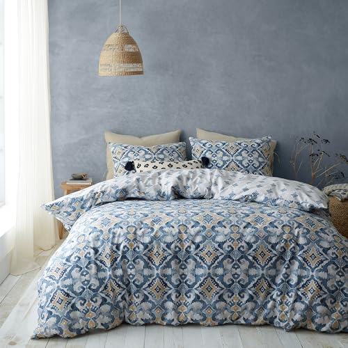 Pineapple Elephant Inara Ikat Parure de lit réversible avec Housse de Couette et taies d'oreiller Bleu Indigo King