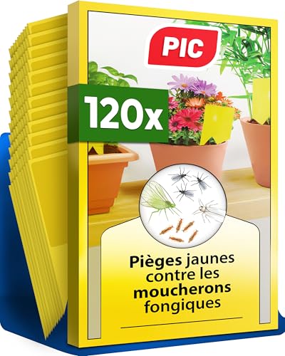 PIC Anti Moucherons Plantes Interieur – 120x Piege Moucherons Interieur efficaces et fiables, Piège Anti moucheron Recto-Verso - Alternative à l'insecticide moucheron, jusqu'à 6 Mois par piège