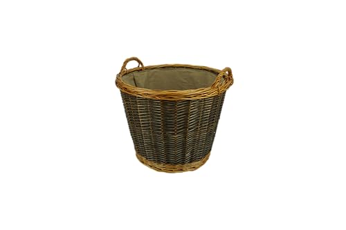 Valo Panier en osier rond avec insert en jute D x H 50 x 41 cm pour bois de cheminée, en matériaux naturels, pour protéger le sol, panier à bois VK000408