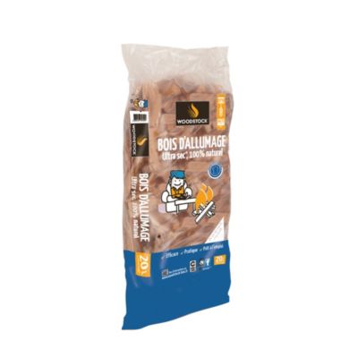 Bois d’allumage Woodstock – sac 20L – bois dur ultra sec ≤15 % prêt à l’emploi – allumage rapide – idéal poêle, insert et cheminée – fabrication fra