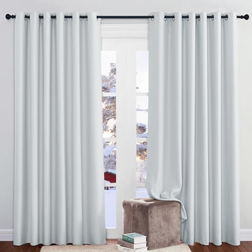 PONY DANCE Rideaux Occultants Thermiques - Lot de 2 Rideau Opaque Panneaux à Oeillets / Insonorisation Coulissant Isolation Lumineux Prêt à Poser, 200 sur 210 cm, Gris Blanc