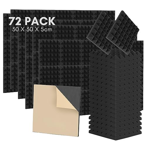 Sonnewelt Mousse acoustique autocollante 72 pièces 5x30x30 cm 3D haute densité absorbeurs acoustiques mur hall carreaux anti-écho réduisent insonorisation pour studio sonore studios d'enregistrement