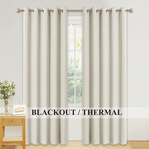 PONY DANCE Rideau Occultants Thermiques - Lot de 2 Panneaux Opaque à Oeillets, Insonorisation Coulissant Isolation Lumineux Prêt Poser, L 167 X H 228 cm, Beige Clair