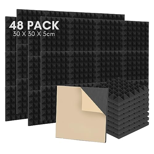 Sonnewelt Mousse acoustique autocollante 48 pièces 5x30x30 cm 3D haute densité absorbeur acoustique mural réduisant réverbération écho carreaux insonorisation pour studio sonore studio