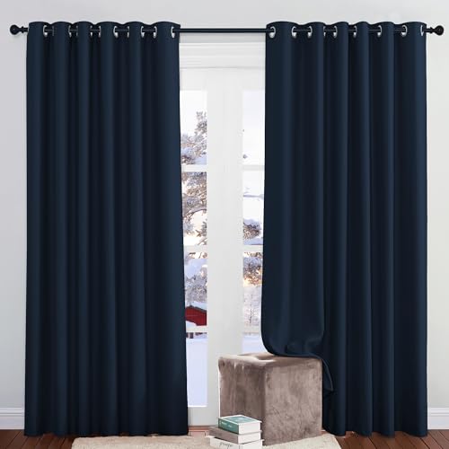 PONY DANCE Rideaux Occultants Thermiques - Lot de 2 Rideau Opaque Panneaux à Oeillets / Insonorisation Coulissant Isolation Lumineux Prêt à Poser, 200 sur 210 cm, Bleu Foncé