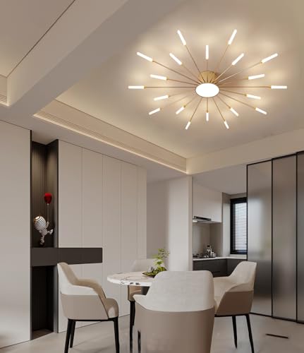 SYAXVOM Plafonnier LED Moderne avec télécommande, intensité Variable, Lustre Noir au Design créatif inspiré des Feux d'artifice, idéal pour la Chambre, Le Salon, la Cuisine et la Salle à m