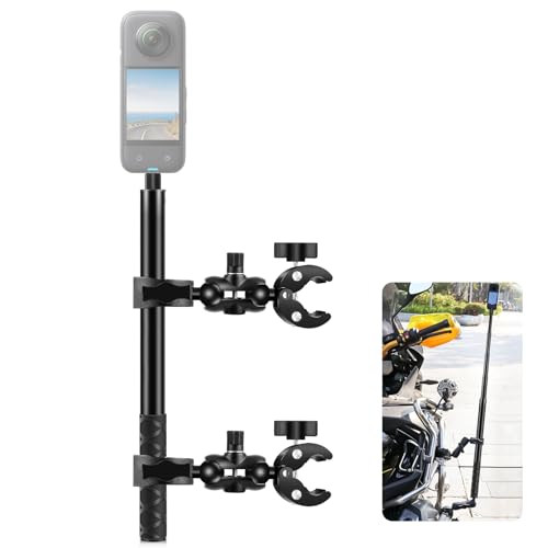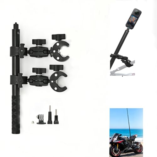 petour Support Moto pour Caméra d'action,150cm Invisible Selfie Perche avec 2 Rotules,Super Pinces,Rotation à 360 Degrés Double Pince Support avec GoPro Insta360 x4,X3,X2,DJI AKASO Action Cam GP-30