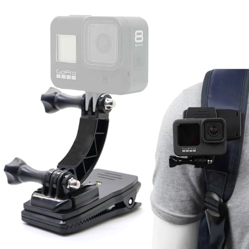 RALSPEC Pince de Fixation de caméra pour Sac à Dos, pour GoPro Hero 12 11 10 9 8 7 6 5 4 3 + 2 Session DJI OSMO Insta 360 Action Body Cam