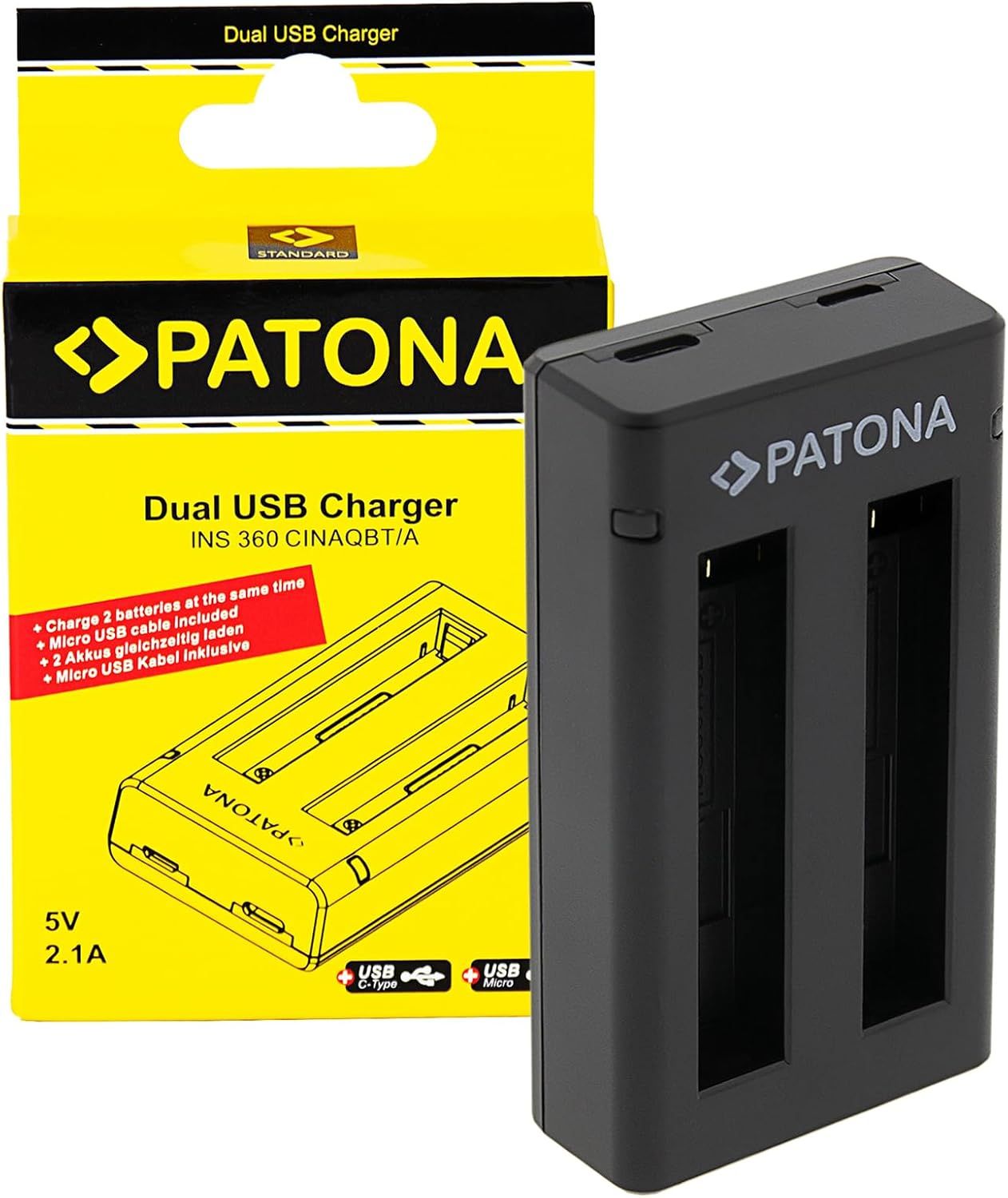 PATONA Chargeur Double Micro USB/USB-C Input (5V / 2,1A) pour IS360X2B Batterie Compatible avec Insta360 One X2 Insta 360 Action Cam