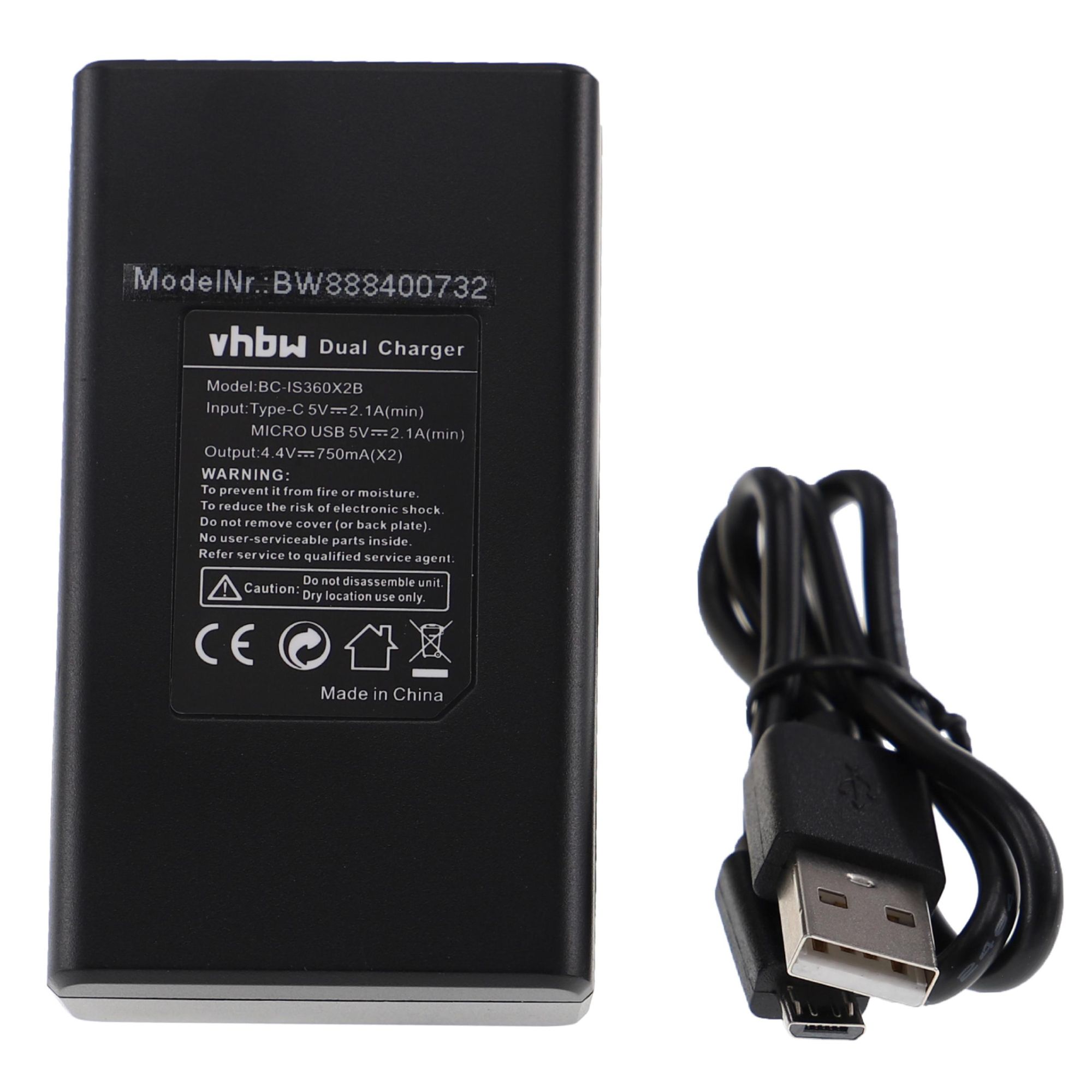 vhbw Chargeur double USB/micro-USB compatible avec Insta360 CINOSBT, CINOSBT/A caméra, action-cam - Chargeur + câble micro-USB, témoin de charge