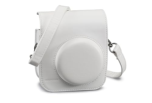 MUZIRI KINOKOO Fuji Mini 12 Housse de Protection pour Fuji Instax Mini 12 Instantanée Appareil Photo - en Cuir PU Sac avec Bandoulière Réglable - Blanc