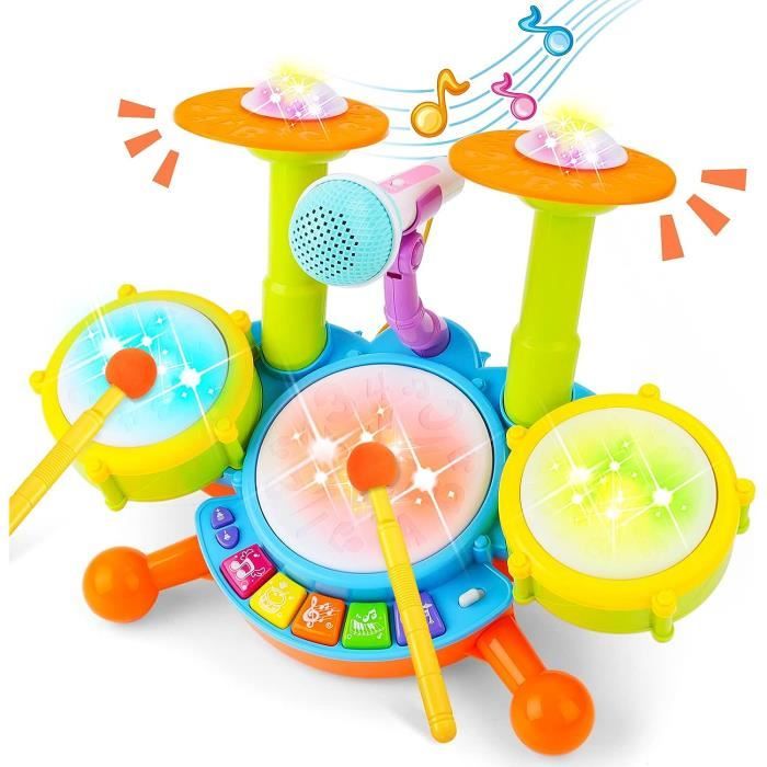 Tambour BebeSet de Percutions pour DébutantsEffets Sonores et Lumineux Faisant de ce Kit Batterie Enfant Instrument