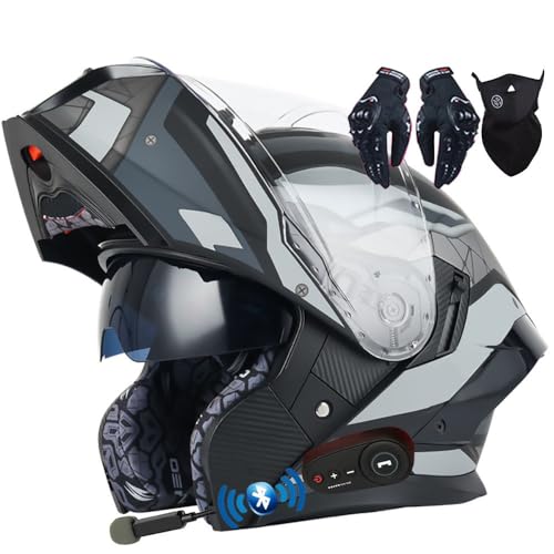Casque Moto Bluetooth Modulable Casques Integral Moto Casque de Moto Protection ECE Homologué Double Visière Casque Scooter Réponse Automatique Intercom pour Adulte Homme et Femme