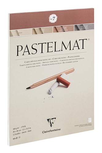Clairefontaine 96053C Bloc Collé Pastelmat n°7 - 12 Feuilles Carte Spéciale pour Pastels Secs - 24x30 cm 360g - 4 Couleurs Assorties - Intercalaires en Papier Cristal