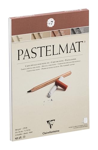Clairefontaine 96052C Bloc Collé Pastelmat n°7 - 12 Feuilles Carte Spéciale pour Pastels Secs - 18x24 cm 360g - 4 Couleurs Assorties - Intercalaires en Papier Cristal