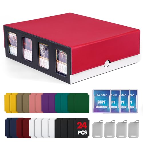 UAONO Boîte de rangement pour cartes à collectionner avec affichage Commander ; plus de 2400 boîtes pour MTG avec couvercle amovible ; étui pour cartes de sport Magic TCG PTCG ; 24 intercalaires, 4