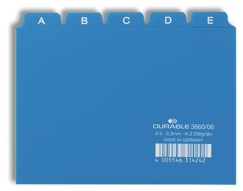 Durable 366006 Jeu de 25 Intercalaires avec onglets imprimés A Z format A6 Bleu