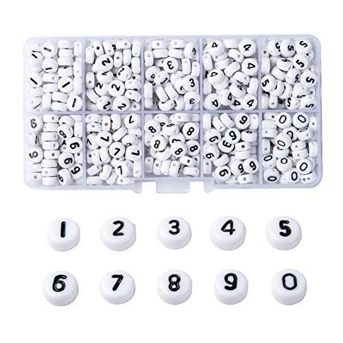 Cheriswelry Lot de 720 perles intercalaires rondes et plates en acrylique - Breloques numérotées de 0 à 9 pour la fabrication de bijoux d’anniversaire - 7 mm - Noir et blanc