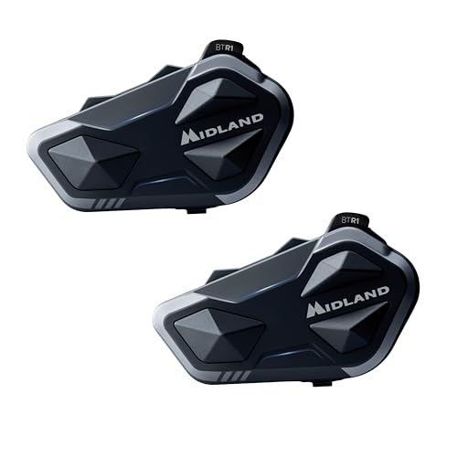 Midland- Intercom Moto Duo pour 2 Casques BTR1, Écouteurs Bluetooth sans Fil Casque Moto Étanche IPX6 800m 4 Personnes Conference, Batterie 23H, Parallel Audio Connexion GPS/Musique Conforme ECE 22.06