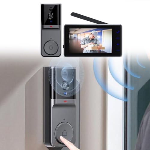 JEXNOVASHOP-Sonnette sans Fil Exterieur Etanche avec écran IPS de 4.3 1080P Sonnette sans Fil avec Camera IP69 Visiophone Audio Bidirectionnel étanche Caméra HD 170° Interphone Vision Nocturne Infrar