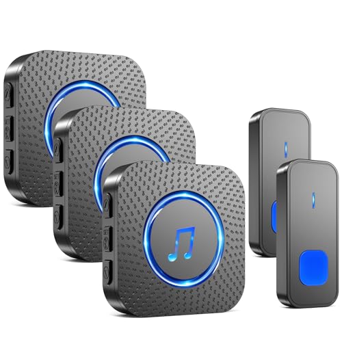 SURFOU Sonnette sans Fil, 400M Sonnette Longue Portée Exterieur Étanche Electronique, Kit de Carillon avec Récepteurs Enfichables pour la Maison, LED Bleu (3 noir récepteur + 2 noir émetteur)