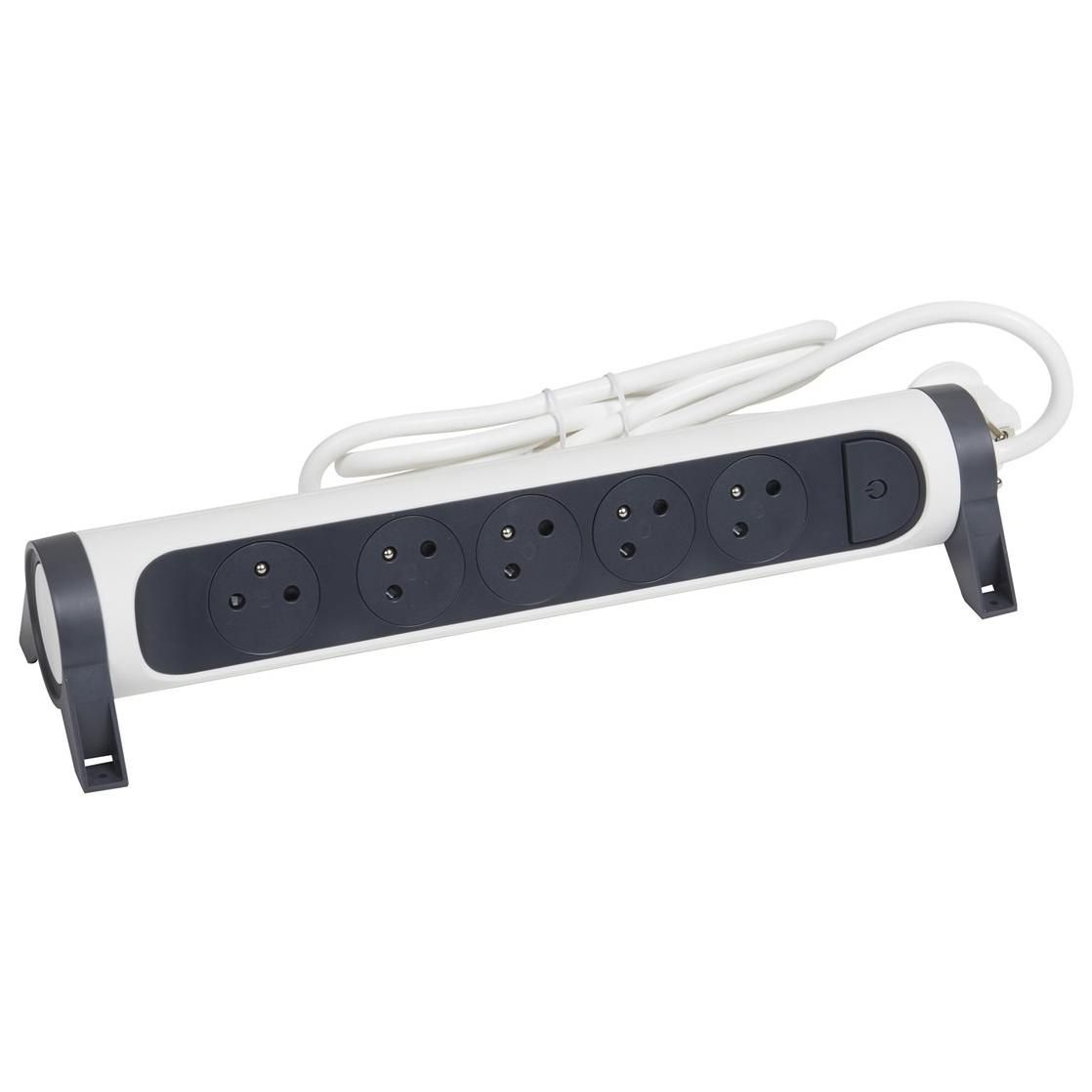 Multiprise avec interrupteur 5 prises rotative à fixer Legrand blanc et gris 3 m