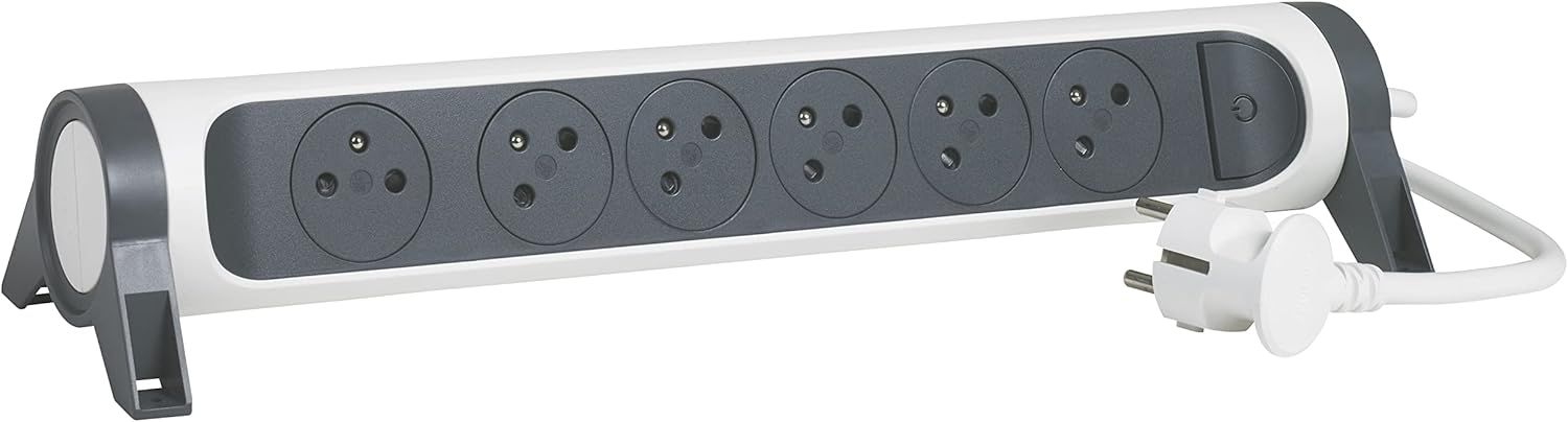 LEGRAND - Multiprise Rotative Avec Interrupteur à Voyant LED - 6 Prises Surface avec Terre - Livrée Sans Cordon/Sans Fiche - Blanc et Gris Foncé