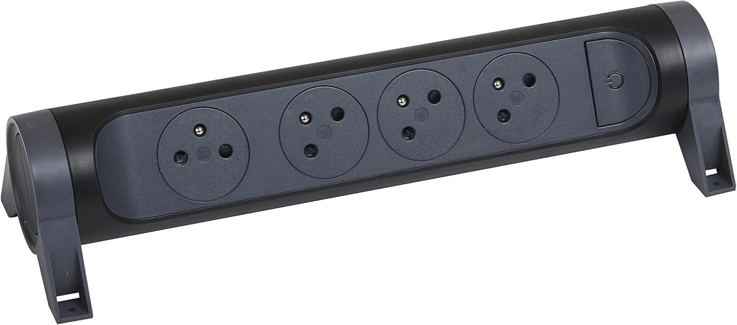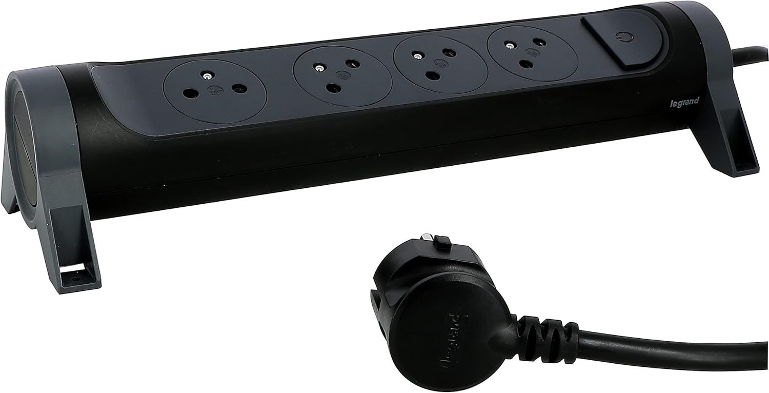 LEGRAND - Multiprise Rotative Avec Interrupteur à Voyant LED - 4 Prises Surface avec Terre - Cordon 1,5m - Noir et Gris Foncé