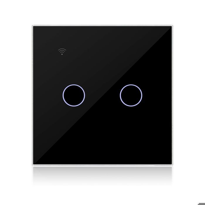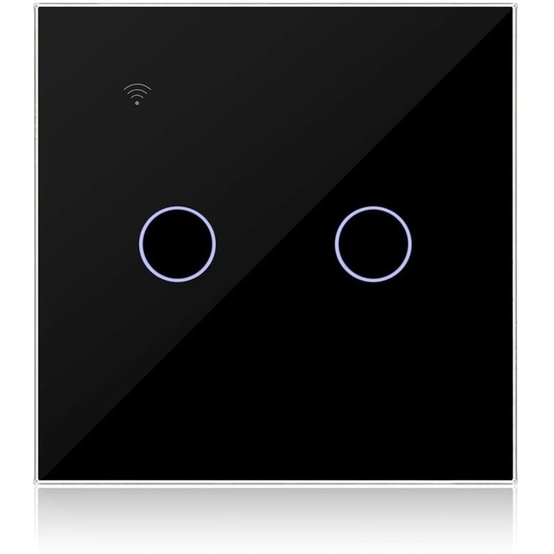 Interrupteur Connecté WIFI Noir 2 Gang 1 Voies Compatible avec Alexa, Interrupteur Tactile Mural WiFi Double Gang Contrôle de Tuya/Smart Life APP,