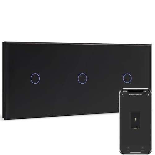 BSEED interrupteur tactile Intelligent, Tripler Interrupteur à 1 Gang 1 Voies Connecté WiFi Compatible avec Tuya,Amazon Alexa, Google Home,panneau tactile WIFI Noir【Besoin d'une Ligne Neutre】