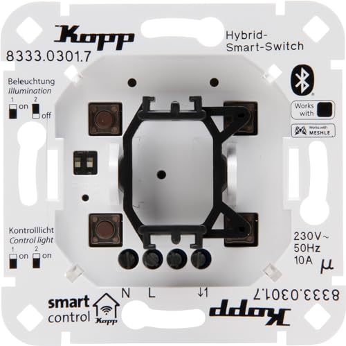 Kopp Smart Control 833303017 Interrupteur intelligent hybride 3 fils, 1 canal avec Univers. Enregistrement à bascule pour Kopp et différents fabricants d'interrupteurs, Smart Home, Amazon Alexa, Google Home