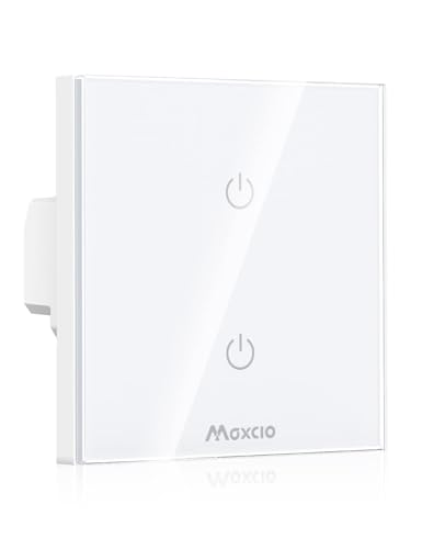 Interrupteur Connecté WiFi, Maxcio Interrupteur Mural WiFi de Lumière Compatible avec Alexa et Google Home, Interrupteur Intelligent avec Écran Tactile, Timer et Partager [FIL NEUTRE OBLIGATOIRE]