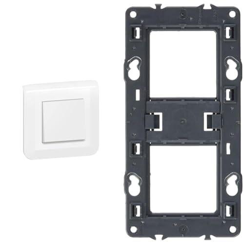 Legrand - Interrupteur ou va-et-vient Mosaic 10A blanc complet avec plaque et fixation à vis & Support à vis pour 2 postes ou 4 à 5 modules pour Mosaic, Céliane ou Soliroc