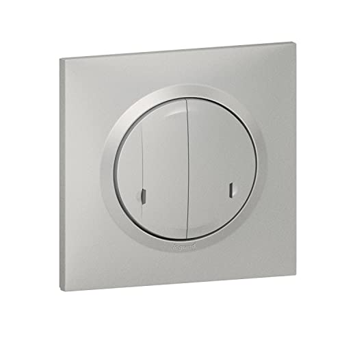 Legrand Interrupteur Double Connecté 2x250w avec Neutre Compatible Toute Charge - Dooxie with Netatmo Complet (Fixations, Support, Enjoliveur et Plaque) - Aluminium - 199258