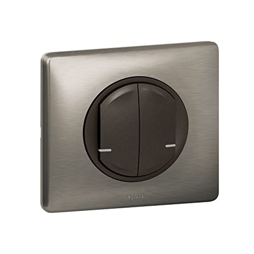 Legrand Interrupteur Double 2x250w Connecté avec Neutre Compatible Toute Charge - Céliane with Netatmo Complet (Fixations, Support, Enjoliveur Graphite, Plaque) - Tungstène - 199188