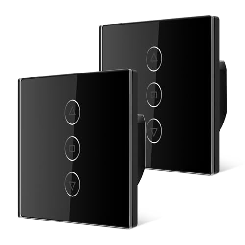 Tallifun 2 Pack Interrupteur Volet Roulant Connecté, 80 * 80mm Interrupteur de Stores WiFi Compatible Alexa/Google Home/SmartLife, APP Contrôle à Distance - Fil Neutre Requis (Noir)