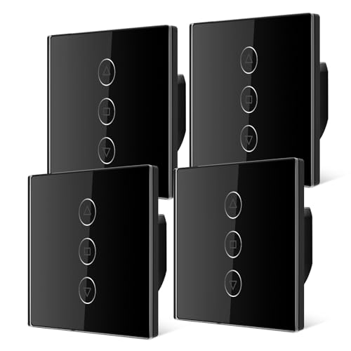 Tallifun 4 Pack Interrupteur Volet Roulant Connecté, 80 * 80mm Interrupteur de Stores WiFi Compatible Alexa/Google Home/SmartLife, APP Contrôle à Distance - Fil Neutre Requis (Noir)