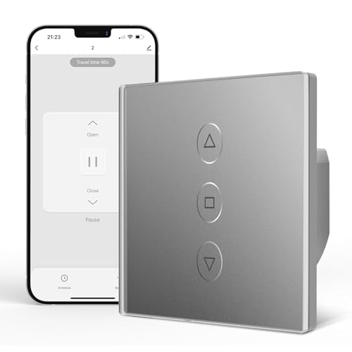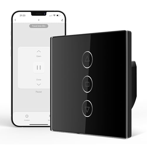 Interrupteur Volet Roulant Connecté, Etersky Interrupteur WiFi Mural de Rideau Compatible avec Alexa et Google Home, Interrupteur Tactile WiFi, Timer et Partager【Besoin d'une Ligne Neutre】