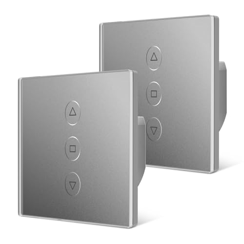 Tallifun 2 Pack Interrupteur Volet Roulant Connecté, 80 * 80mm Interrupteur de Stores WiFi Compatible Alexa/Google Home/SmartLife, APP Contrôle à Distance - Fil Neutre Requis (Gris)