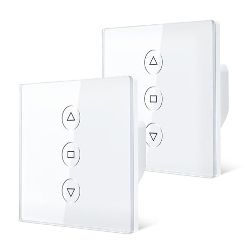 Tallifun 2 Pack Interrupteur Volet Roulant Connecté, 80 * 80mm Interrupteur de Stores WiFi Compatible Alexa/Google Home/SmartLife, APP Contrôle à Distance - Fil Neutre Requis (Blanc)