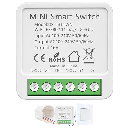 1 Pièce Interrupteur Wifi Smartlife, Alexa Interrupteur Connecté, 2.4Ghz Interrupteure Intelligent, Compatible avec assistants vocaux, Smart Life, Tuya, 16A, Mini Smart Switch avec Minuterie